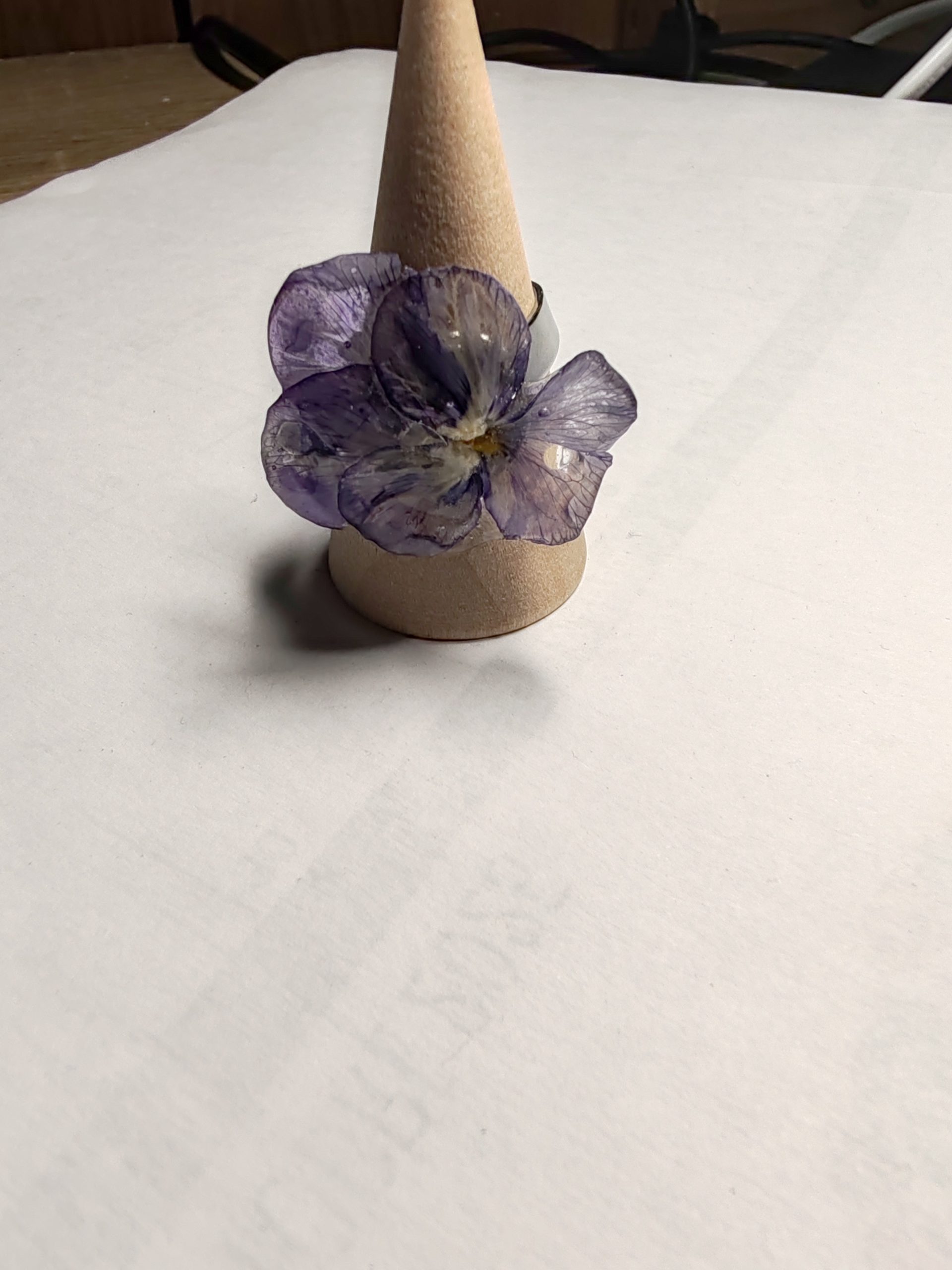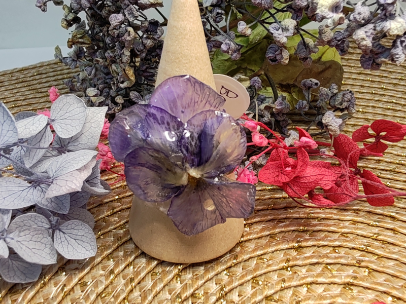 Cette bague met en valeur la beauté douce et poétique d’une véritable fleur de pensée mauve, soigneusement préservée dans une résine transparente qui capture chaque nuance. Ses tons mauves subtils offrent un charme délicat et féminin, tandis que la résine cristalline protège la fleur pour en faire un bijou durable.