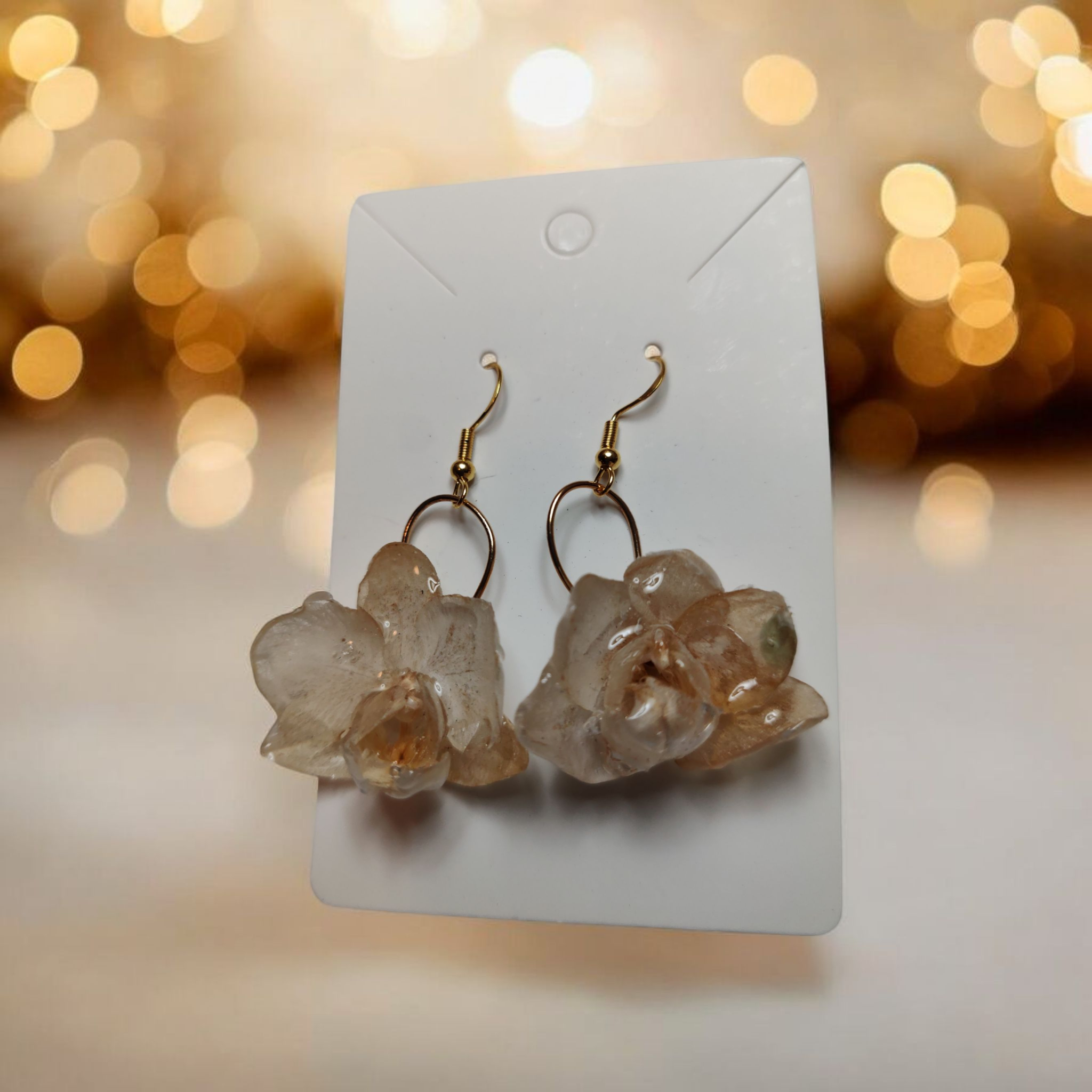 Découvrez l’élégance intemporelle de nos boucles d’oreilles en véritables fleurs d’orchidée, soigneusement sélectionnées puis préservées dans une résine cristalline.
