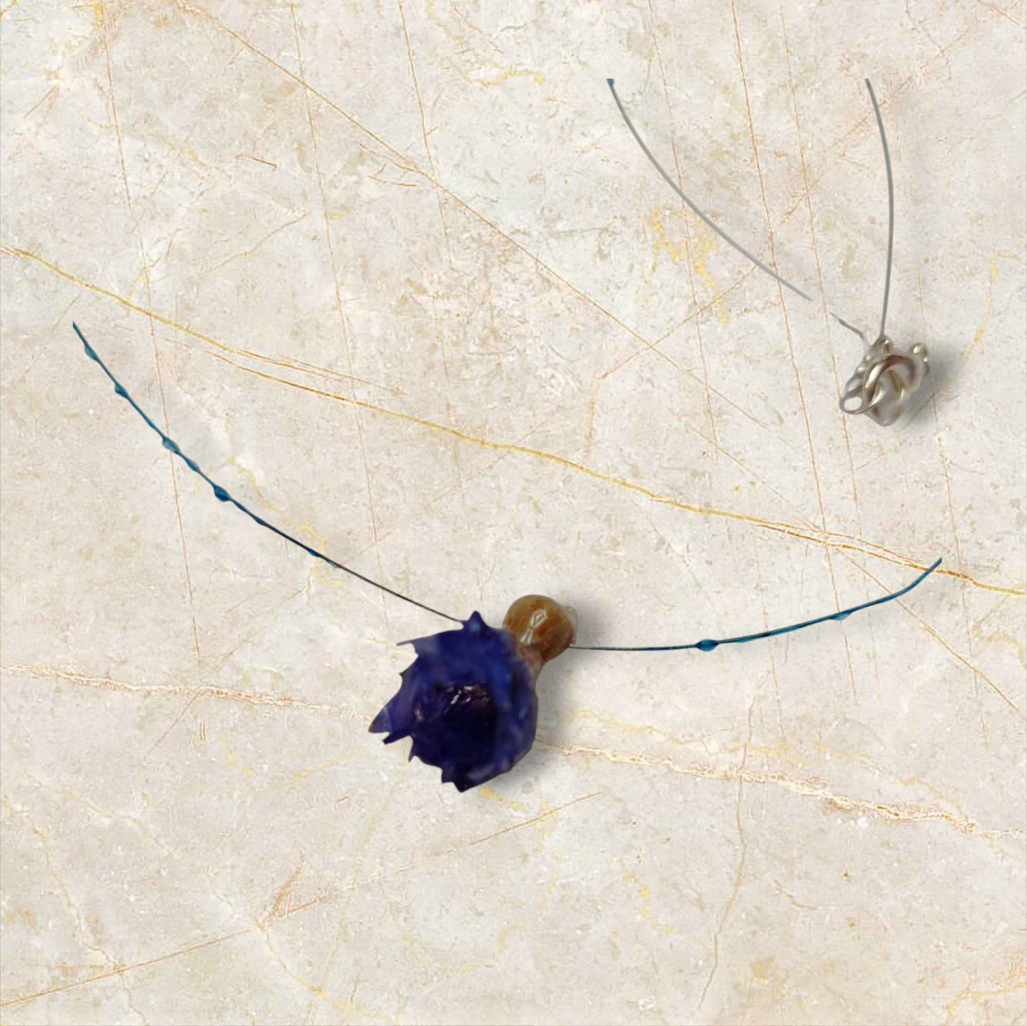 Succombez au charme sauvage de ce pendentif unique, réalisé avec un véritable bleuet des champs soigneusement cueilli puis préservé dans une résine cristalline. La couleur bleue intense de cette fleur emblématique de nos prairies est sublimée par la transparence du pendentif, offrant un bijou lumineux et naturel.