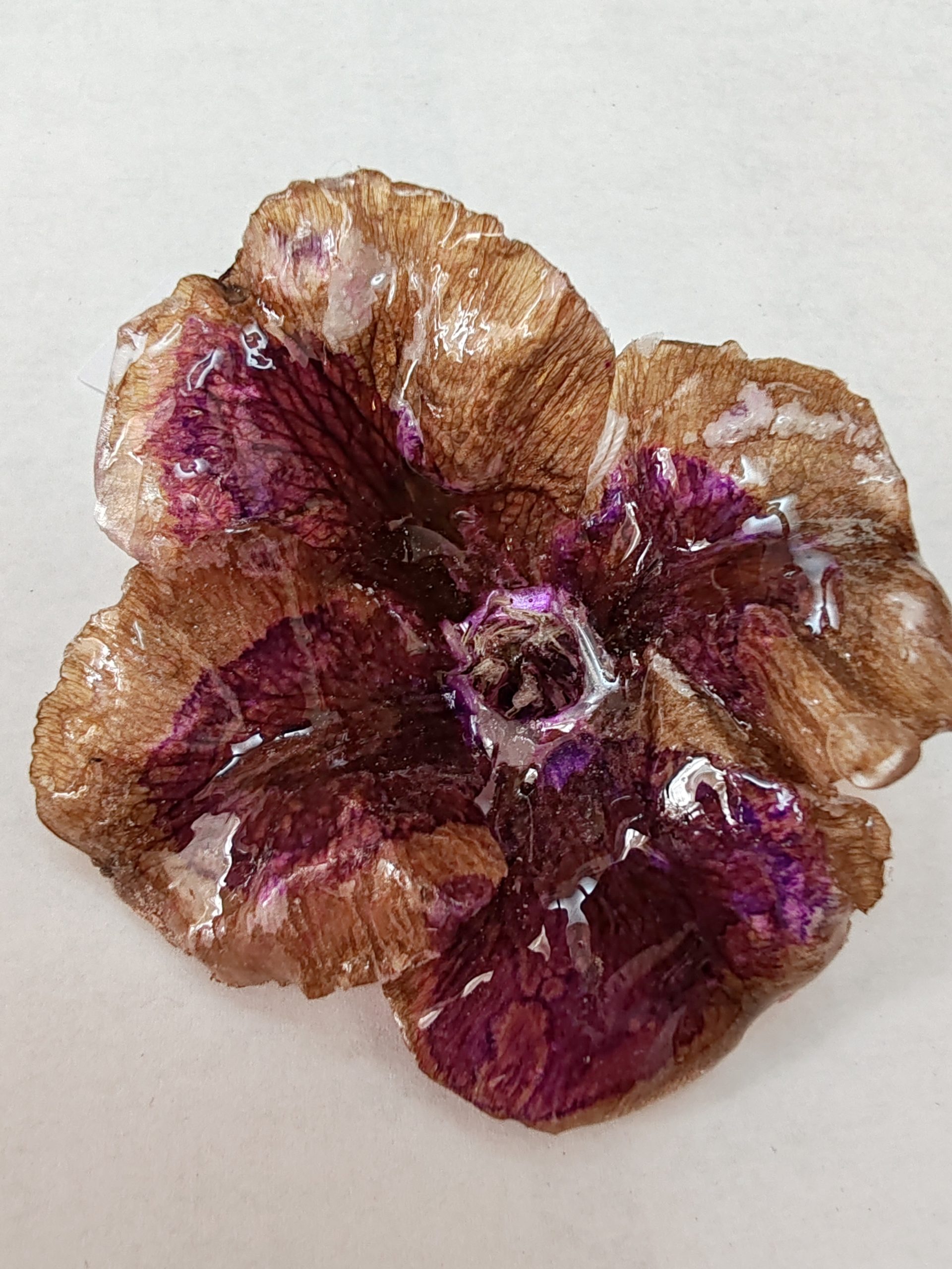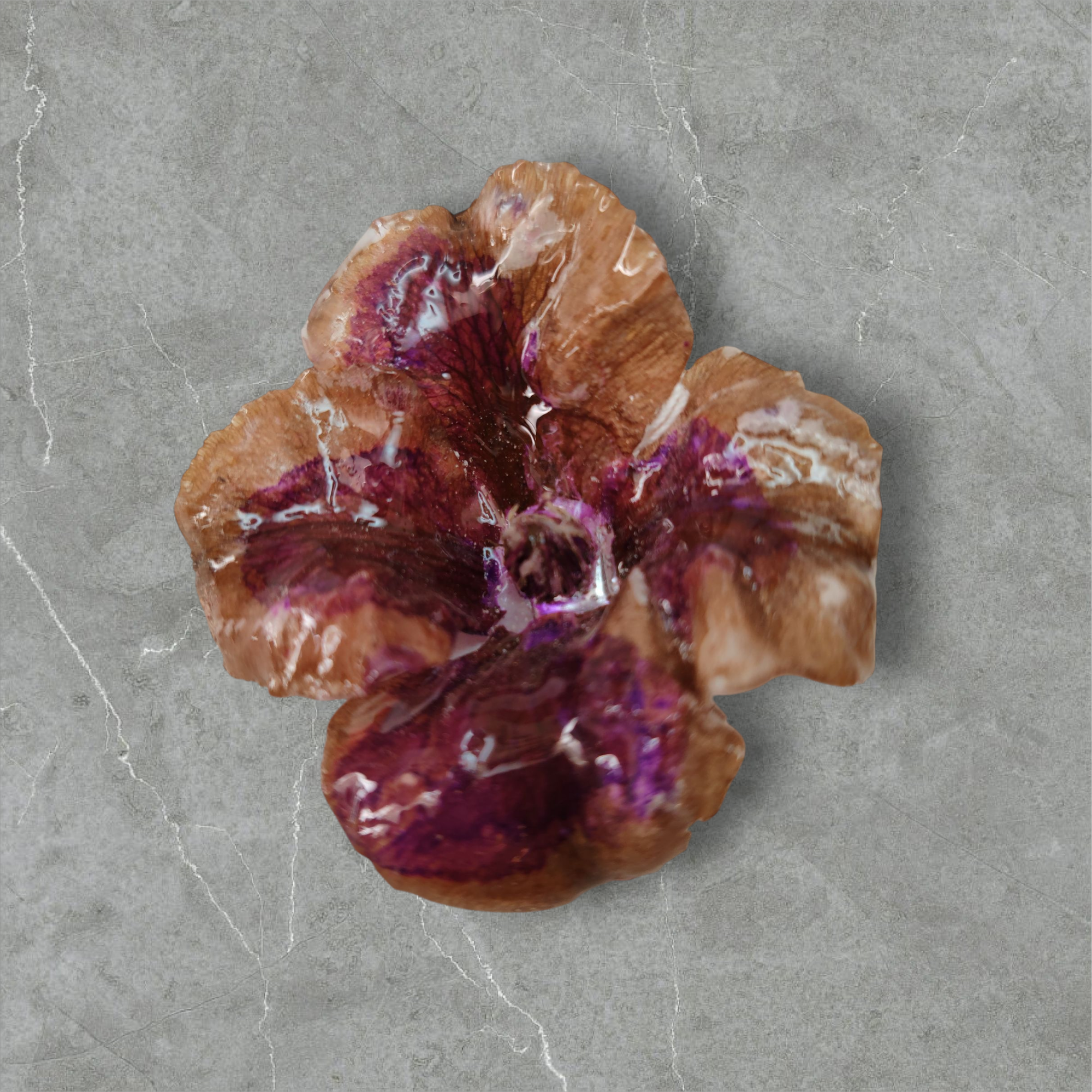 Fleur d’hibiscus naturelle consolidée dans de la résine cristal