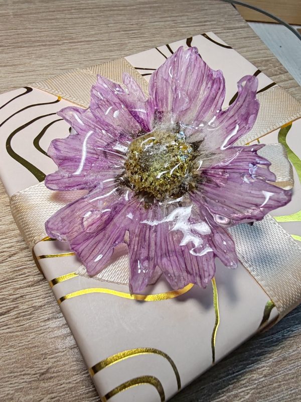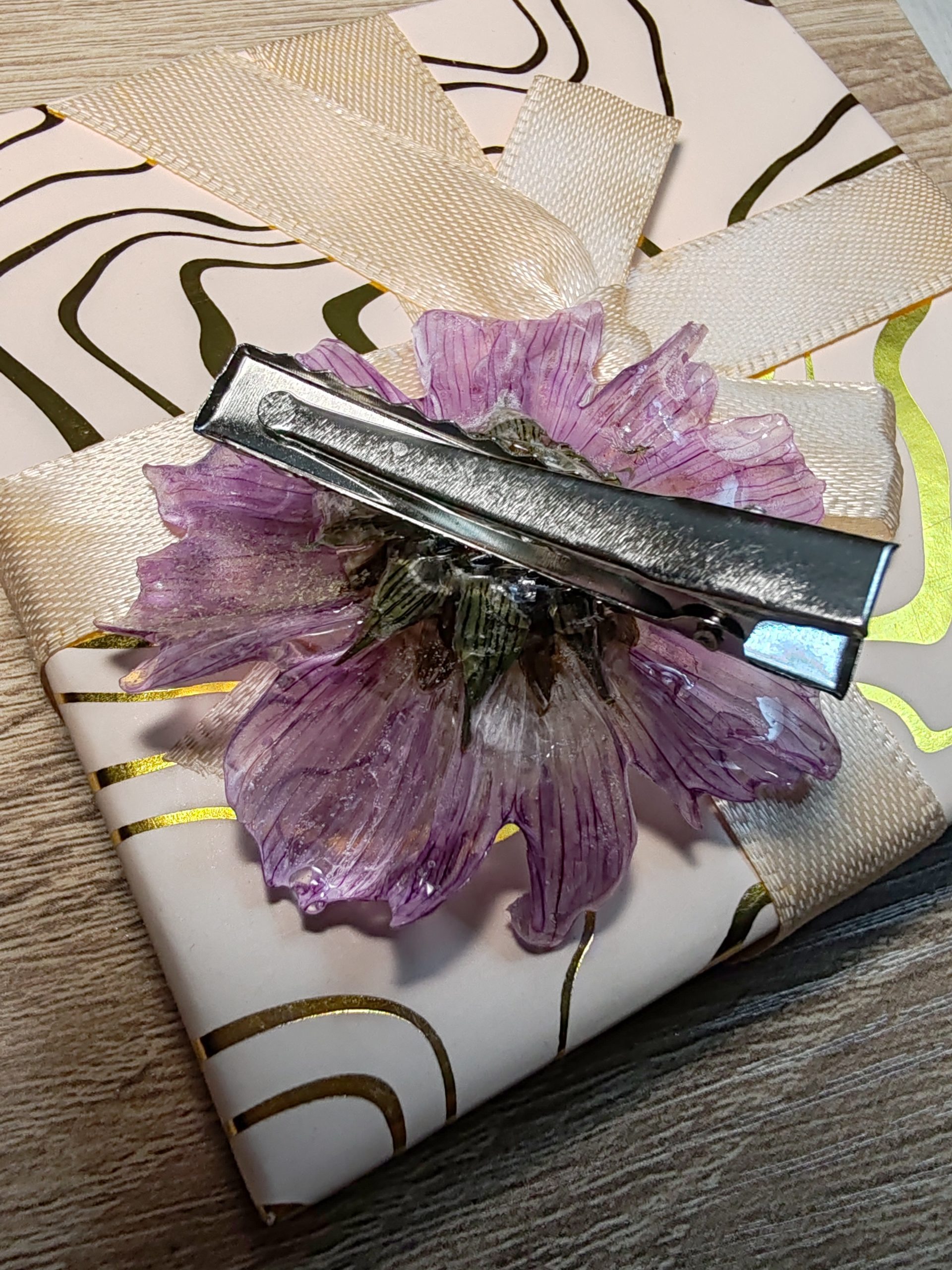 Découvrez l’élégance intemporelle de notre pince de fleur mauve, une pièce artisanale créée à partir d’une véritable fleur soigneusement sélectionnée puis préservée dans une résine cristalline. Cette technique permet de capturer toute la finesse et la beauté de la nature, offrant un bijou durable, léger et parfaitement translucide.