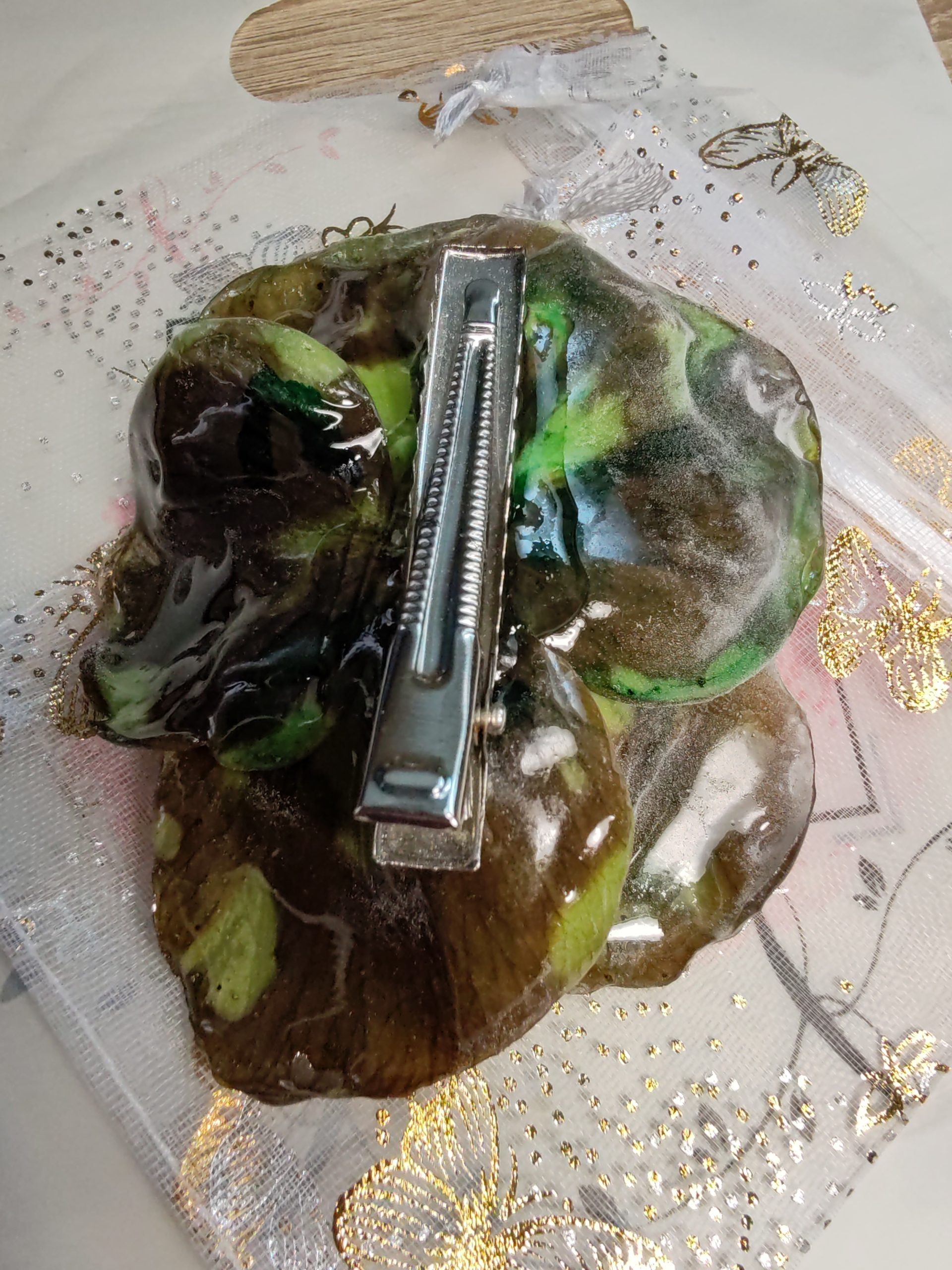 Entièrement façonnée à la main, chaque pince est une pièce unique, légère et agréable à porter. Elle offre une touche poétique et élégante, parfaite pour agrémenter une coiffure quotidienne, un événement spécial ou un look hivernal sophistiqué. Sa présence florale subtile en fait un accessoire intemporel qui illumine votre style.